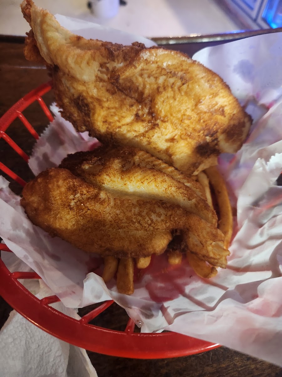 Tasty All you can eat Fish & chips on Friday! Also, recommend the Wrangler pizza. It comes as a pan style crust but I'm told they have a thin crust s well. Austin & Amy are fun bartenders!